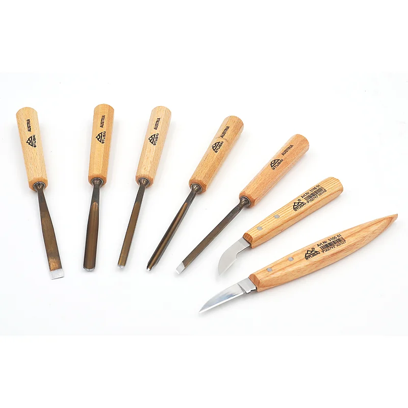 Set 7 utensili da scultura Stubai, Made in Austria.Questo assortimento è particolarmente indicato per chi vuole iniziare l'arte della scultura del legno con degli strumenti di grande qualità e durata ...
