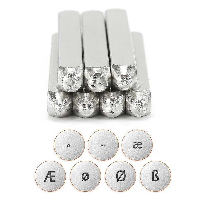 Timbre en acier au carbone, qualité professionnelle Pour imprimer des métaux tendres tels que le laiton, le cuivre, le nickel, l'or, l'argent et l'aluminium. Ils peuvent également être utilisés sur des argiles et sur le cuir.
