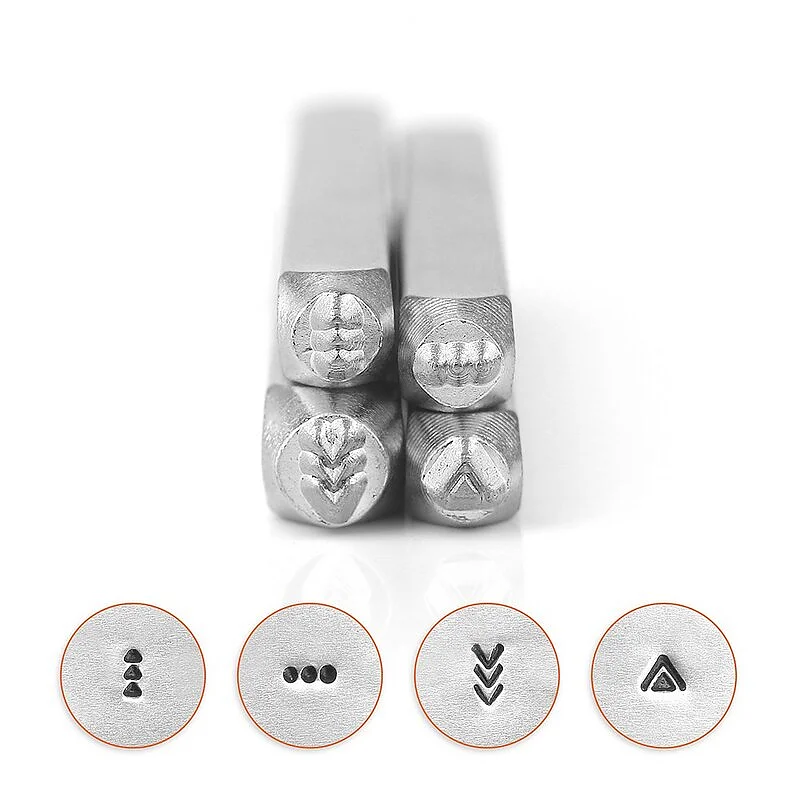 Timbre en acier au carbone, qualité professionnelle Pour imprimer des métaux tendres tels que le laiton, le cuivre, le nickel, l'or, l'argent et l'aluminium. Ils peuvent également être utilisés sur des argiles et sur le cuir.