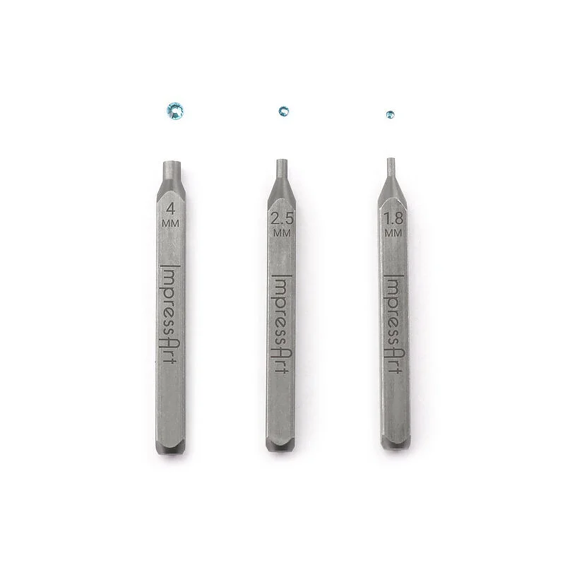 Aggiungi delle note di colore ai tuoi progetti metal stamping! Questo kit include il necessario per creare una sede dentro cui fissare una pietra a fondo piatto. Il kit include:3 utensili fissatori, d...