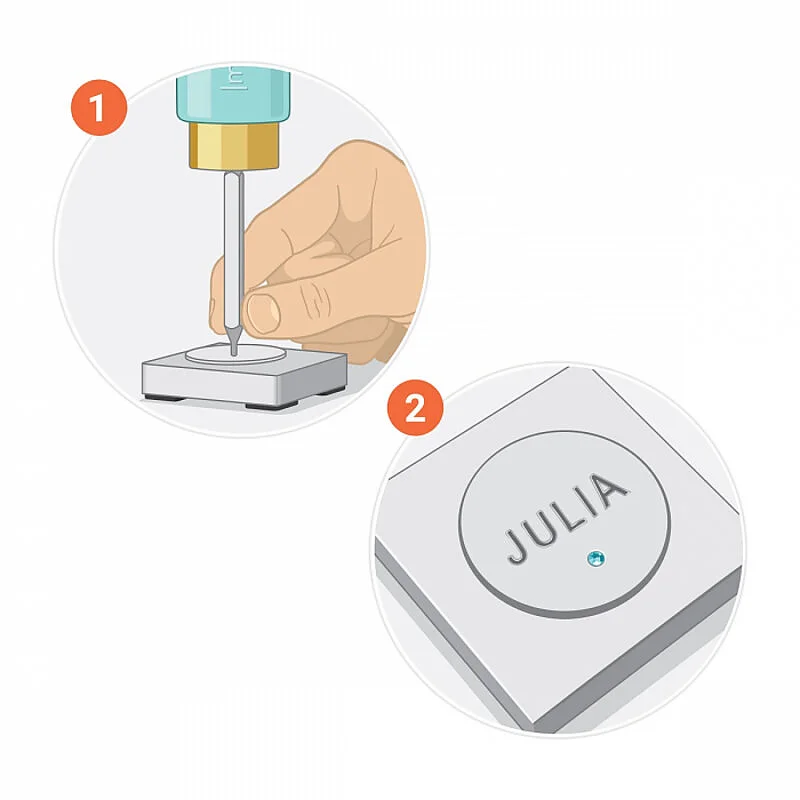 Appllicare un collante per gioielleria nell'incavo e fissare la pietra, lasciando asciugare.