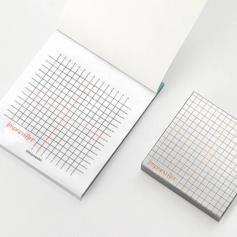 Questi adesivi proteggono dai graffi e riducono la distorsione che si genera sul retro dei semilavorati da stampare. La griglia è utile come guida di riferimento per stampe e disegni simmetrici. L'adesivo deve essere semplicemente applicato sul blocco in acciaio prima della stampa. Il libretto include 20 adesivi dimenioni 10 x 10 cm.