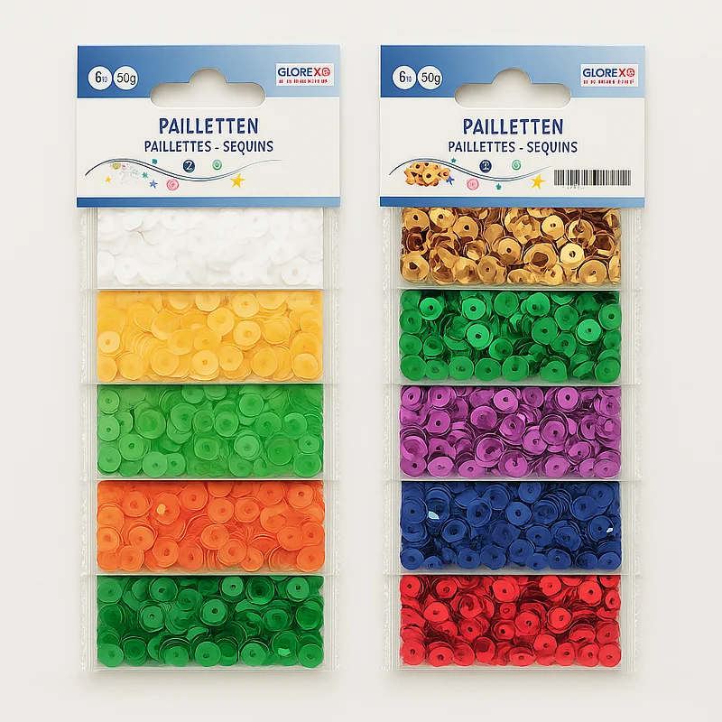 Paillettes de 6 mm en 6 couleurs, sachet de 30 g. Le mélange contient des paillettes mates ou brillantes, idéales pour parsemer, coller, décorer des cartes ou réaliser des décorations de table pour anniversaires d’enfants. Conviennent à de nombreux travaux créatifs.
