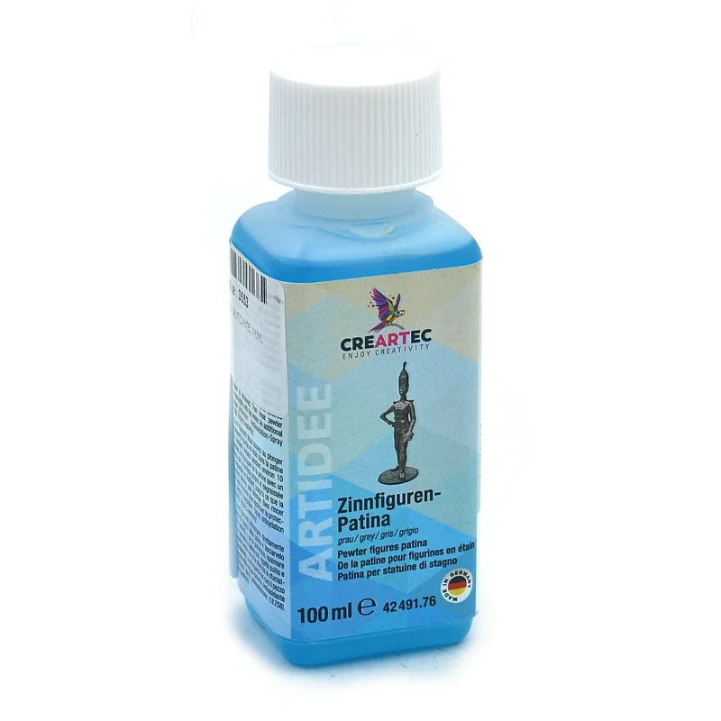 Patine pour l'étain, le plomb, le laiton, le cuivre. Créer une réaction de coloration de bronze avec moyennement rapide. Faiblement nocif.