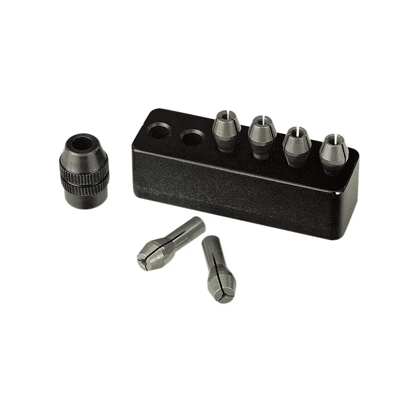 Si adattano a tutti i micromotori Proxxon e Xenox, ad esclusione del modello GG12. Misure: 1.0 -1.5 - 2.0 - 2.4 - 3.0 e 3.2 mm. con ghiera di serraggio e zoccoletto portapezzi....