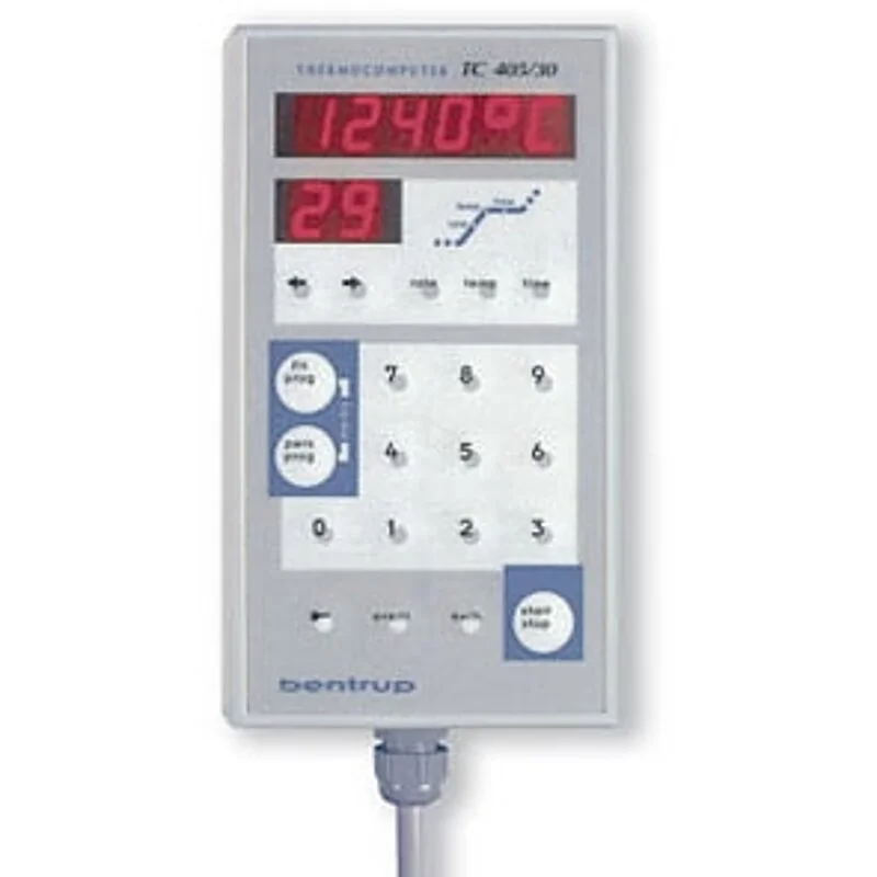 Ordinateur regulateur thermique TC405/30 Ce regulateur possde d'excellentes caractristiques. Pour professionnels. Il est indiqu pour la vitro fusion et le casting. Circuits lectroniques doubles et auto vitrifiants 100%. 6 programmes fixes, 84 personnalisables environ. Courbe de cuisson dsignable avec prcision jusqu' 30 segments de temprature avec gradients thermiques de 0,2C/H Dcalage de mise en fonctionnement jusqu' 10H. Gestion en cas d'interruption du rseau. Calcul de la puissance absorbe du four. Sortie supplmentaire programmable. Prcision 0,2%. Dimensions : 200x110x60mm. Version avec poigne.