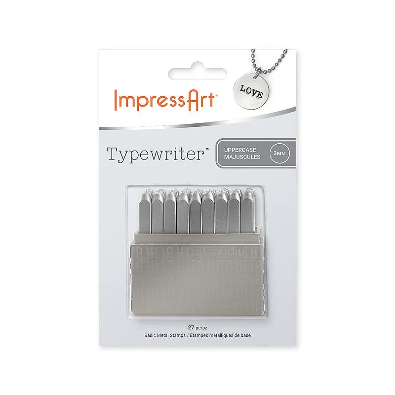 Set stampi alfabeto, Typewriter. Caratteristiche chiave Maiuscolo Dimensioni: 3 mm (riferito all'altezza delle lettere Include alfabeto completo dalla A alla Z e il simbolo &. Adatto a stampare m...