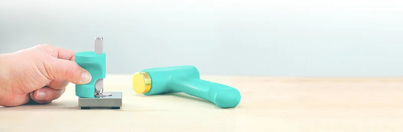 Ce support est conçu pour aider à produire les impressions parfaites. Il suffit de placer le timbre dans le siège, tenez fermement le support, et le martelage. Le support maintient le fil dans le moule, ce qui permet d'obtenir toujours une impression parfaite, tout en protégeant les doigts. Version timbres de 3 mm, comprend timbre en forme de coeur