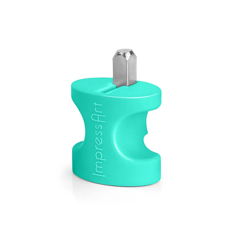 Ce support est conçu pour aider à produire les impressions parfaites. Il suffit de placer le timbre dans le siège, tenez fermement le support, et le martelage. Le support maintient le fil dans le moule, ce qui permet d'obtenir toujours une impression parfaite, tout en protégeant les doigts. Version timbres de 6 mm, comprend timbre en forme de coeur