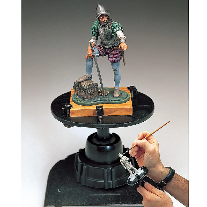 Supporto per il montaggio e la finitura di modelli. E' dotato di un sostegno omnidirezionale, due piani di appoggio intercambiabili (13x10 e 6,5x6,5cm) un manico per lavorare a mano libera e 8 morsetti. Non include morsetti 12815.