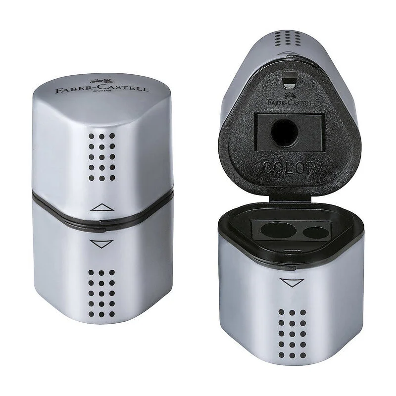 Le taille-crayon Faber-Castell Grip 2001 avec réservoir est un accessoire pratique et polyvalent, conçu pour tailler crayons standards, jumbo et de couleur. Fabriqué en plastique résistant argenté, il dispose de 3 trous adaptés aux crayons ronds, triangulaires et hexagonaux. Son double réservoir de copeaux assure propreté et confort, idéal pour l’école, le bureau et les loisirs créatifs.