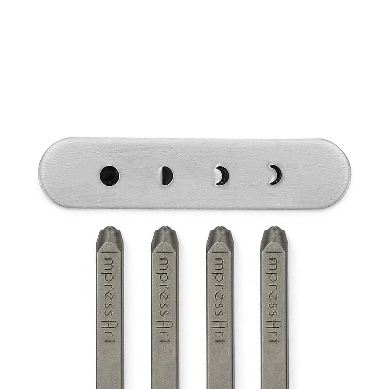 Lesmoules en métal ImpressArt Signature sont des moles de qualité professionnelle, fabriqués selon les normes les plus élevées de durabilité et d'alignement. Les moules sont conçus en acier trempé et évalués pour résister à l'emboutissage sur des métaux mous et durs jusqu'à l'acier inoxydable *. Les bords de conception tranchants assurent des impressions nettes et profondes, projet après projet. Les motifs sont marqués sur le côté du timbre pour une identification et une orientation faciles. Taille : 4 mm Ensemble de 4 pièces Caractéristiques: