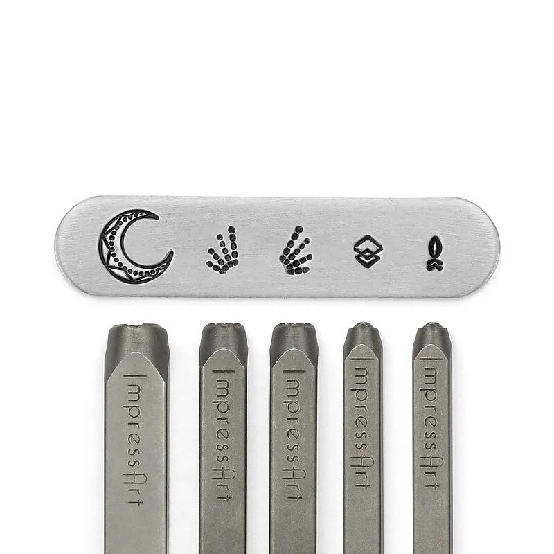 Lesmoules en métal ImpressArt Signature sont des moles de qualité professionnelle, fabriqués selon les normes les plus élevées de durabilité et d'alignement. Les moules sont conçus en acier trempé et évalués pour résister à l'emboutissage sur des métaux mous et durs jusqu'à l'acier inoxydable *. Les bords de conception tranchants assurent des impressions nettes et profondes, projet après projet. Les motifs sont marqués sur le côté du timbre pour une identification et une orientation faciles. Ensemble de 5 pièces composé de: