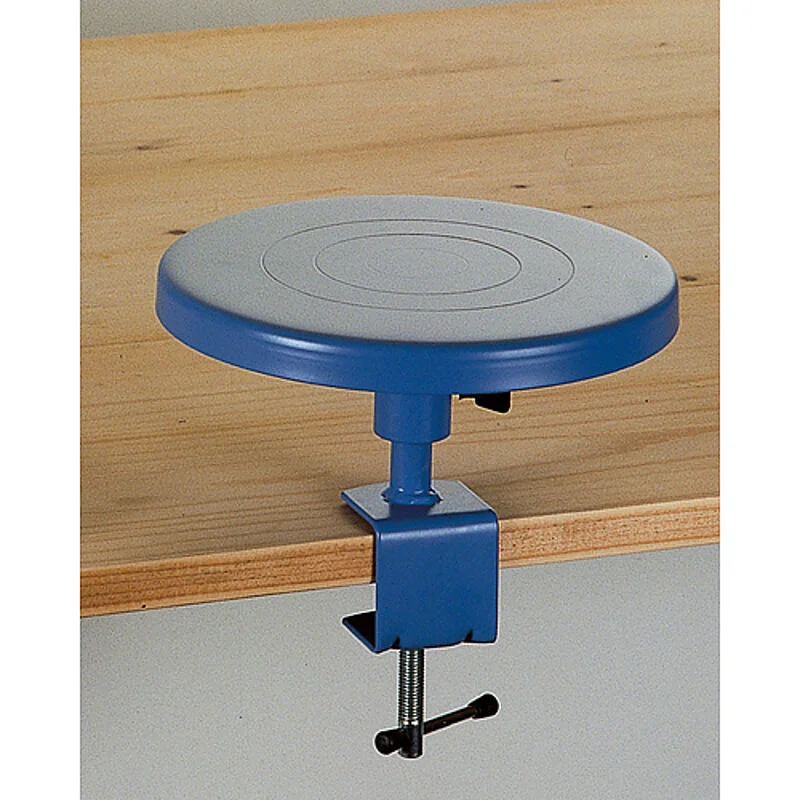 Tornio per decorazione della ceramica.Caratteristiche chiaveFissaggio sul bordo del tavolo mediante morsetto.Solida costruzione in acciaio verniciato blu pastello.Diametro piatto 200 mm...