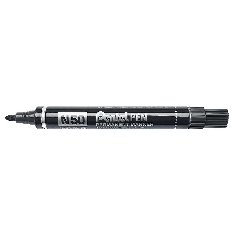 Il marcatore Pentel N50 è permanente con punta extra forte e fusto in metallo. Garantisce un'elevata indelebilità dell'inchiostro, rendendolo adatto a tutte le superfici: legno, vetro, gomma, metallo, cartone, carta e plastica.