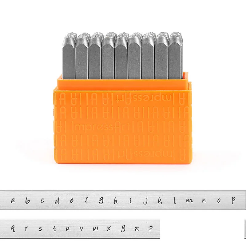 Include alfabeto completo dalla "A alla Z" e il simbolo "?" Adatto a stampare metalli soffici come ottone, rame, alpacca, oro, argento e alluminio. Adatto anche per imprimere cuoio e argille o paste polimeriche.