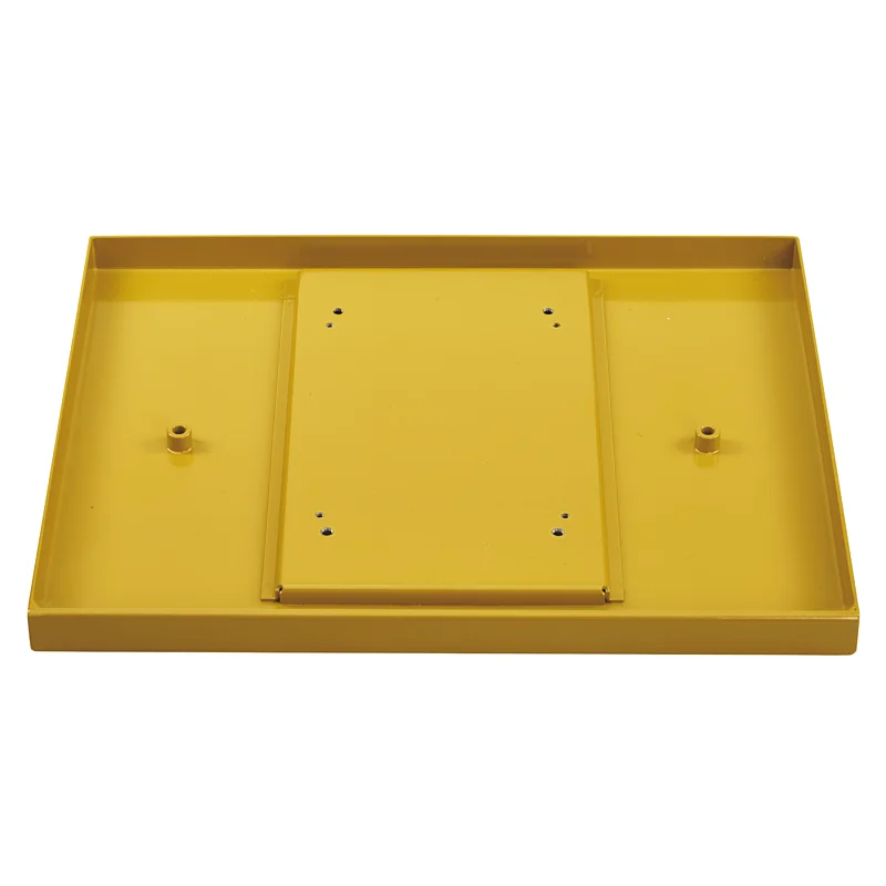 Realizzato in lamiera d'acciaio spessa 1,5 mm, verniciata a polvere. Supporto sicuro grazie ai fori di fissaggio (distanza tra i centri dei fori 274 mm) per il fissaggio su una superficie di lavoro (l'uso di manicotti in acciaio mantiene il vassoio ermeticamente sigillato). Misure: L 388 mm, L 308 mm, A 24 mm.
